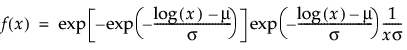 Fréchet分布のxにおける密度を戻す。密度関数は、次のように表記できます。