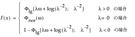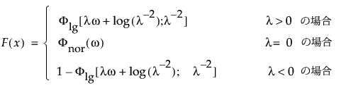 は標準化した対数ガンマ分布の累積分布関数で、κ > 0は形状パラメータです。