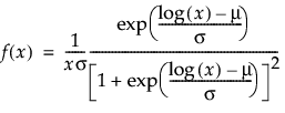 一般化対数分布のxにおける密度を戻す。密度は、次のように表記できます。