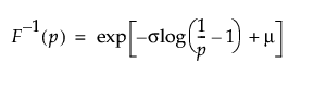 指定されたパラメータをもつWeibull分布の累積確率がpとなる分位点を戻す。分位点関数は、次のように計算されます。