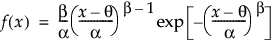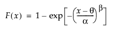 Weibull分布のxにおける累積確率を戻す。累積確率は、次のように表記できます。