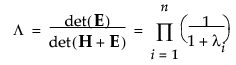 以下のセクションにおいて、Eは残差交差積行列、Hはモデル交差積行列です。Eの対角要素は、各変数の残差平方和です。Hの対角要素は、各変数のモデル平方和です。判別分析に関する文献では、Eは、「within」の頭文字を取ってWと呼ばれることもあります。