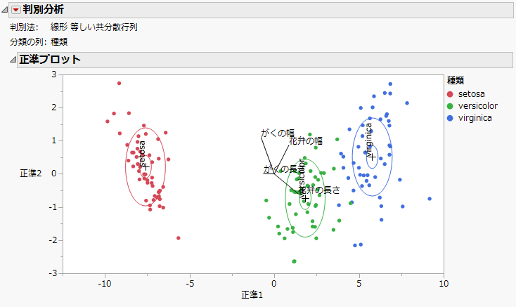 判別分析は、複数の連続変数から、どのグループ(カテゴリ)に属するかを予測します。判別分析は、連続尺度の応答変数(Y変数)から、カテゴリカルな分類変数(X変数)を予測します。判別分析では、所属するグループが既知で、そのグループを予測するために連続変数のデータを用います。