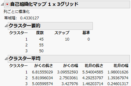 図12.11 Iris.jmpの「自己組織化マップ」レポート