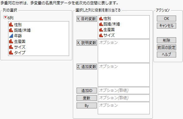 [分析]>[多変量]>[多重対応分析]を選択します。