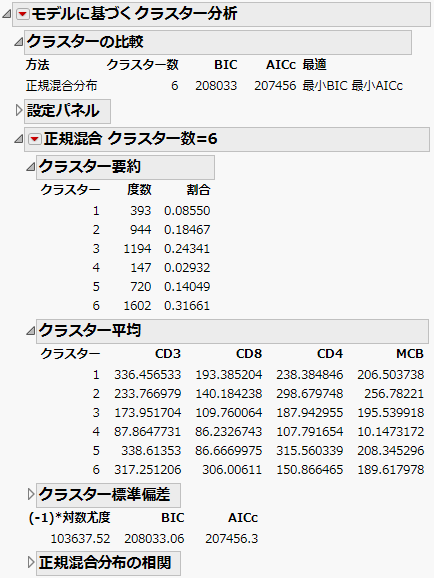「正規混合 クラスター数=6」の横の赤い三角ボタンをクリックし、[三次元バイプロット]を選択します。