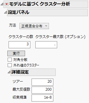 「モデルに基づくクラスター分析」のコントロールパネル