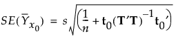 x0における応答変数の平均に対する標準誤差は、次式で推定されます。