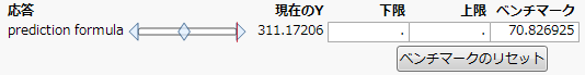 現在のXの値に対する、応答の予測値です。因子の値を変更すると、それに応じて値が更新されます。