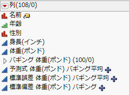 で割った値です。なお、「<列名>」は、バギングの対象となっている応答変数の列名です。標準誤差は、予測精度を検討するために役立ちます。標準誤差がごく小さい場合は、そのデータ行に対する予測が精確であることを表します。バギングの詳細については、Hastie et al.(2009)を参照してください。