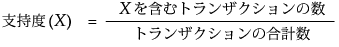 支持度は、あるアイテム集合が現れるトランザクションの割合を指します。