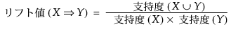 この節では、アソシエーション分析で計算される指標を説明します。条件アイテム集合