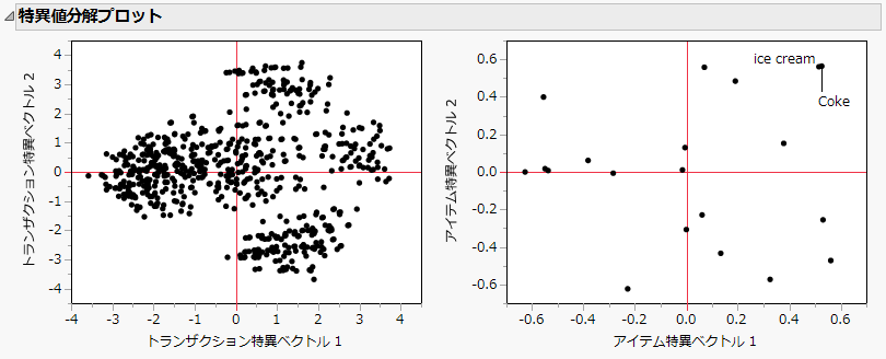 アソシエーション分析では、一緒に生じているアイテムを特定できます。この手法は、トランザクションデータ(マーケットバスケット)を分析するのによく使われています。1回の購入において同時に購入されることが多いアイテム(商品)を特定するのに役立ちます。たとえば、食料品店やオンライン通販業者は、アソシエーション分析に基づいて、一緒に購入される傾向にある商品を戦略的に組み合わせて、それらの組み合わせを推奨しています。