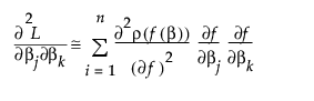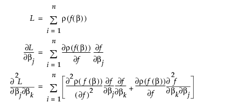 ρが残差の2乗のときは、残差の合計が小さいため、第2項は小さくなるはずです。また、切片項があるときは0になります。最小2乗法の場合は、この項がGauss-Newton法とNewton-Raphson法とで異なります。