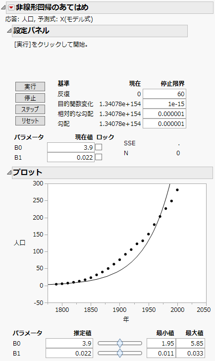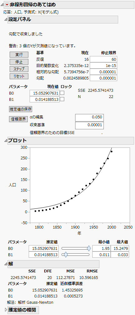 図13.5 最初の「非線形回帰のあてはめ」レポート