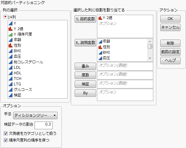 JMPの場合は、「検証セットの割合」に「0.3」と入力します。