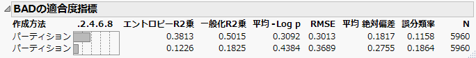 「確率(BAD==Good Risk) 2」列と「確率(BAD==Bad Risk) 2」列には、[欠測値をカテゴリとして扱う]を使わない計算式が含まれています。