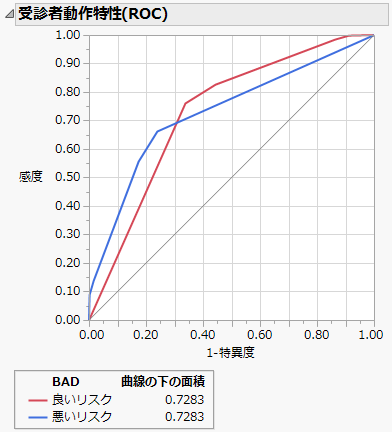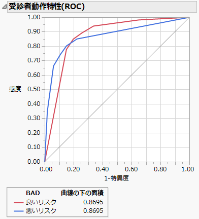 「BADのパーティション」の赤い三角ボタンをクリックし、[ROC曲線]をクリックします。