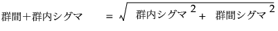 サブグループ内のばらつきから計算された、標準偏差の推定値。この推定値は、短期における工程のばらつきから計算されています。その計算方法は、指定した管理図の種類によって異なります。統計的詳細については、『品質と工程』の「工程能力」章を参照してください。[平均ではなく中央値を使用]オプションを選択した場合、群内シグマは第 “平均ではなく中央値を使用”で説明されているように計算されます。