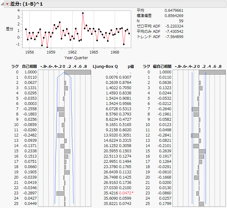 図16.18 「SeriesP.jmp」の「差分」レポート