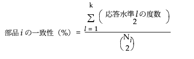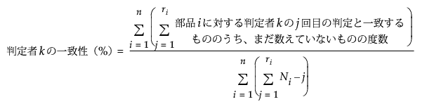 Ni = m x ri。部品i (i = 1,...,n)の判定回数。これには、判定者全員を表す応答と、部品ごとの繰り返しの判定も含まれます。たとえば、部品iが3人の判定者により3回判定された場合、Niは3 x 3 = 9となります。