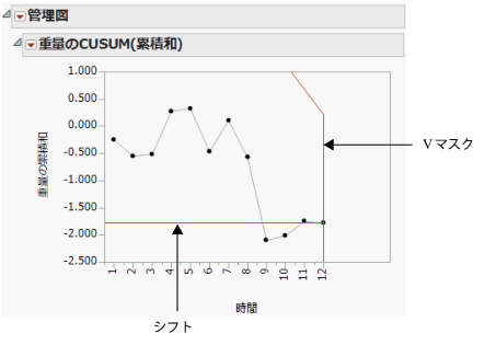 第 “「VマスクCUSUM(累積和)」管理図プラットフォームのオプション”