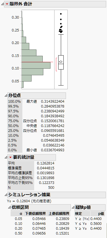 図11.31 「純度」の「限界外 合計」をシミュレーションした値の分布