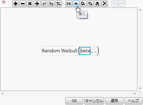 計算式エディタで、[乱数]>[Random Weibull]を選択します。