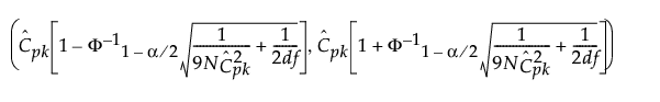 Cpkの100(1 - α)%信頼区間は、次のように計算されます。
