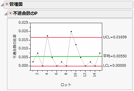 [分析]>[品質と工程]>[管理図]>[P]を選択します。