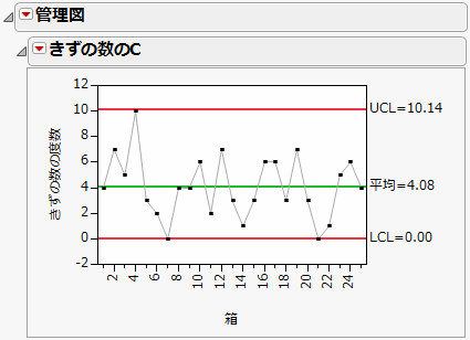 [分析]>[品質と工程]>[管理図]>[C]を選択します。
