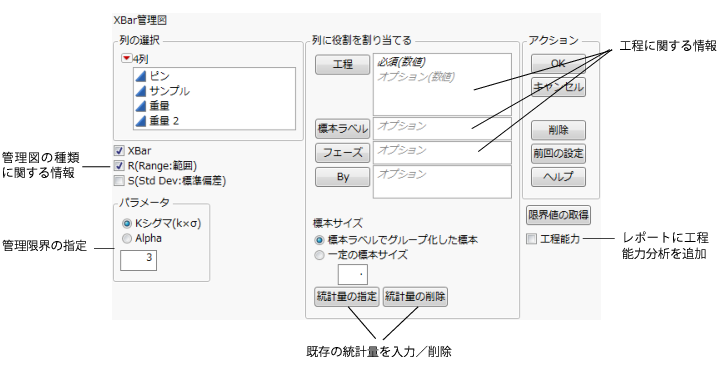 図4.3 「XBar管理図」起動ウィンドウ