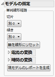 「モデルの指定」の「単純線形経路」パネルにおいて、劣化経路を表す線形モデルの種類を指定します。ここでは、劣化経路が線形の場合、または非線形であっても線形に変換できる場合を扱えます。「モデルの指定」の「単純線形経路」を参照してください。