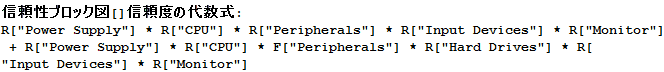 [信頼度の代数式をログウィンドウに表示]コマンドは、選択されているシステムダイヤグラムの信頼度を求める代数式をログウィンドウに出力します。