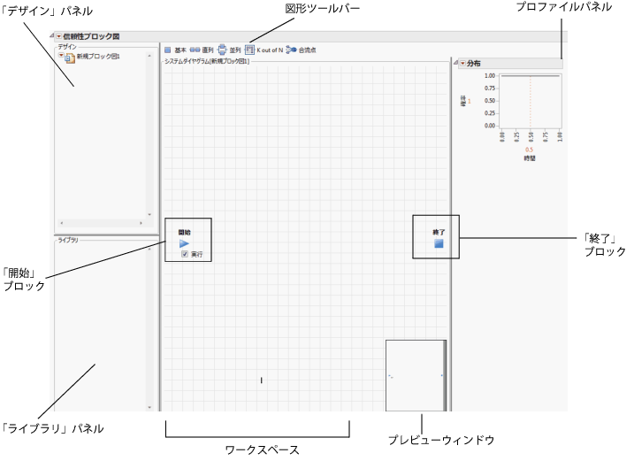[分析]>[信頼性/生存時間分析]>[信頼性ブロック図]を選択します。