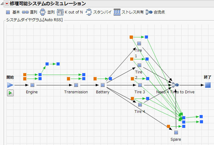 図12.1 修理可能なシステムのシミュレーションダイヤグラム
