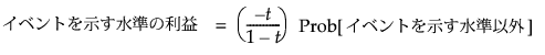 「利益が最大となる予測値」は、利益がこれらの2つの値の大きい方となる水準です。上記の2つの利益の式から、Prob[イベントを示す水準]が少なくともtに設定されているときには、オブザベーションがイベントを示す水準に割り当てられるという結果が導き出されます。