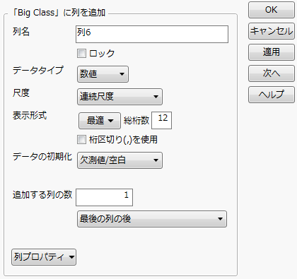 列情報ウィンドウを使って、データテーブルの列に特定のプロパティを設定します。以下は、列に対して実行できるアクションの一部です。