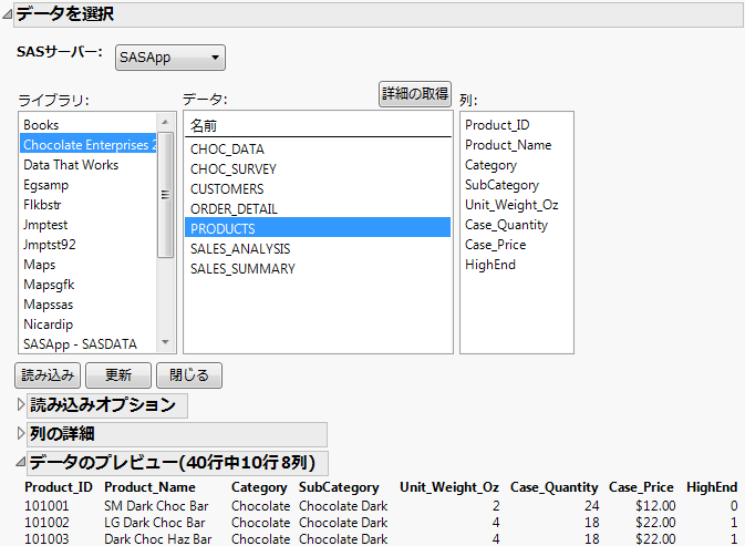 「SASデータを参照」ウィンドウで、[読み込み]をクリックします。