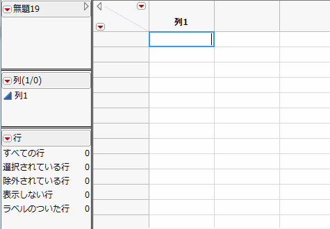 [ファイル]>[新規作成]>[データテーブル]を選びます。行はなく、「列1」という数値列が1つあるだけの空のデータテーブルが表示されます。