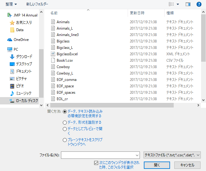 JMPへのデータの読み込み
