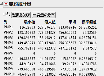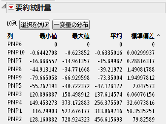 「要約統計量」レポートで、「PNP6」の行を選択した状態で、データテーブルを表示します。