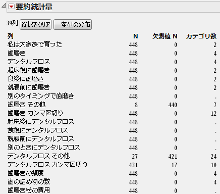 図4.15 選択した列の「要約統計量」