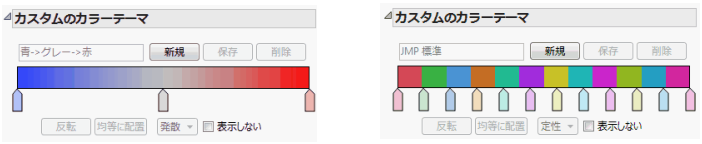 「カスタムのカラーテーマ」パネルには、連続変数とカテゴリカル変数の両カラーテーマの「カスタムのカラーテーマ」パネルがそれぞれ表示されています。