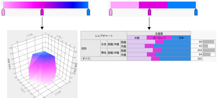 図4.32 連続変数とカテゴリカル変数のカラーテーマの例