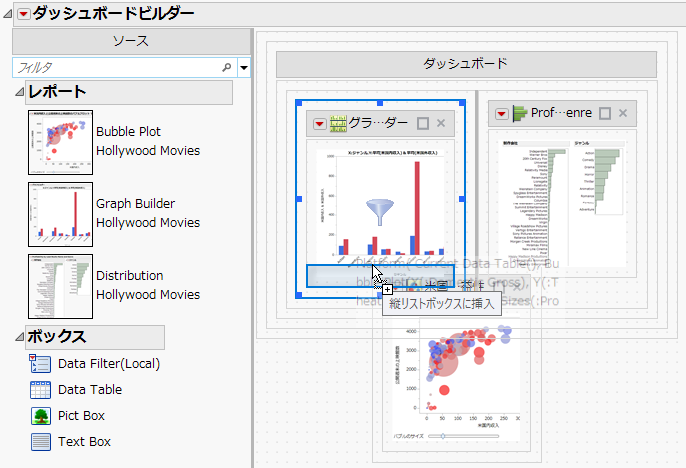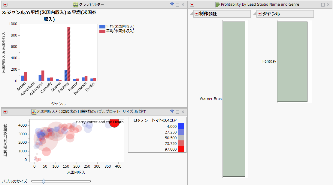 [ヘルプ]>[サンプルデータライブラリ]を選択し、「Hollywood Movies.jmp」を開きます。
