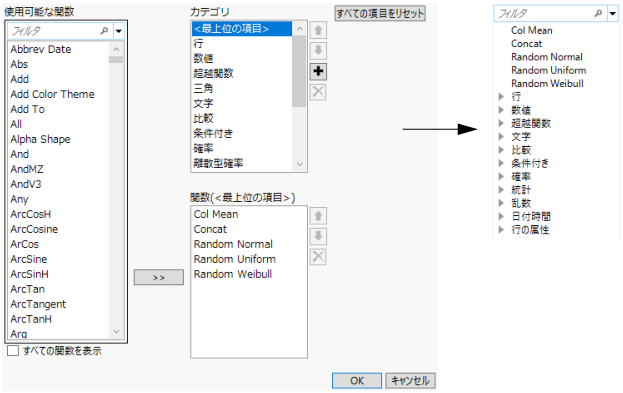 赤い三角ボタンのメニューから[関数リストのカスタマイズ]を選択します。