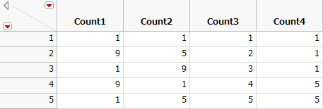 行に関する関数には、たとえば、特定のセルにおける値を参照する関数があります。ほかにも、等差数列の値を、各行に代入する関数もあります。構文の詳細については、『スクリプトガイド』の「JSL関数」章を参照してください。