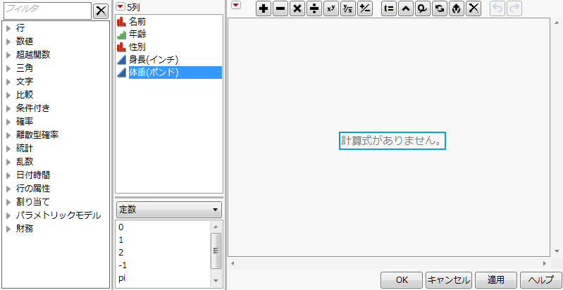 『スクリプト構文リファレンス』でも、計算式エディタで使用できる関数だけでなく、JMPで用意されている関数について解説しています。JMPで[ヘルプ]>[JMPヘルプ]を選択し、左の列で『スクリプト構文リファレンス』を見つけます。