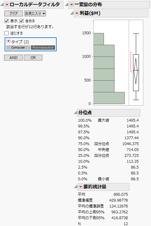 「一変量の分布」の赤い三角ボタンのメニューから、[ローカルデータフィルタ]を選択します。